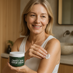 "Efter klimakteriet gick min hud från normal till skrynklig över en natt. Det här är ingen magi, men det är så mycket bättre. Huden känns tjockare, strukturen jämnare. Behöver inte längre oroa mig för ljussättning. Tips: använd även på bröstet."